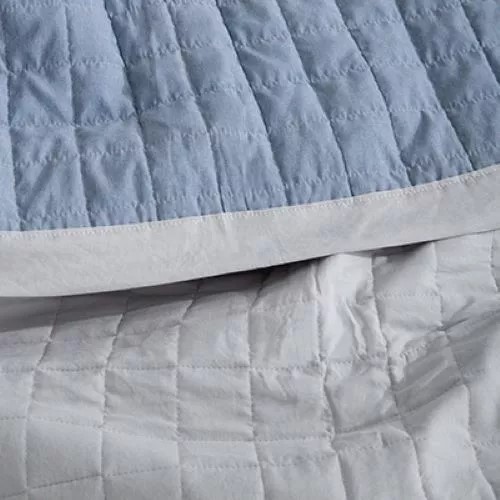 Cover liso matelaseado con marco de microfibra prewashed y reverso símil jean.