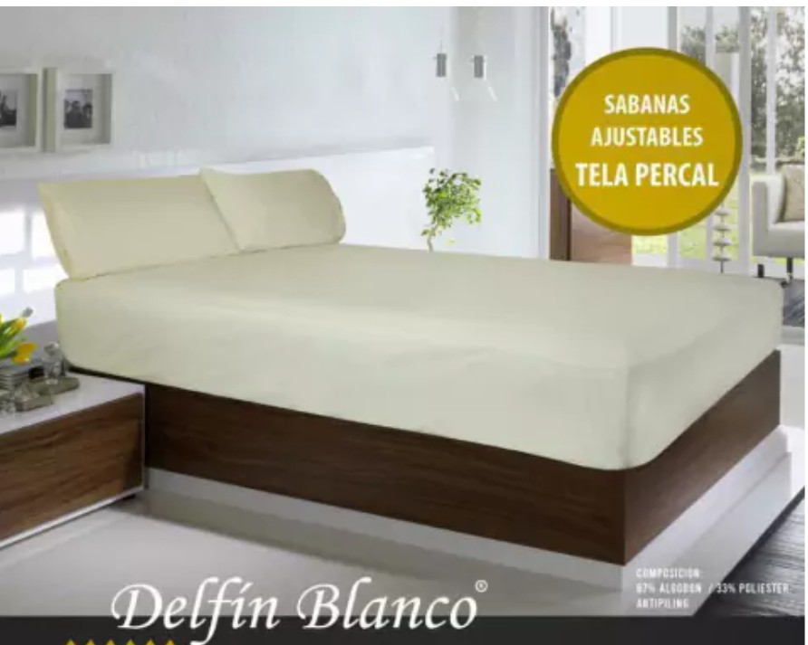 Sabana Ajustable Delfin Blanco 150 Hilos Percal 100% Elastizada Twin/Natural