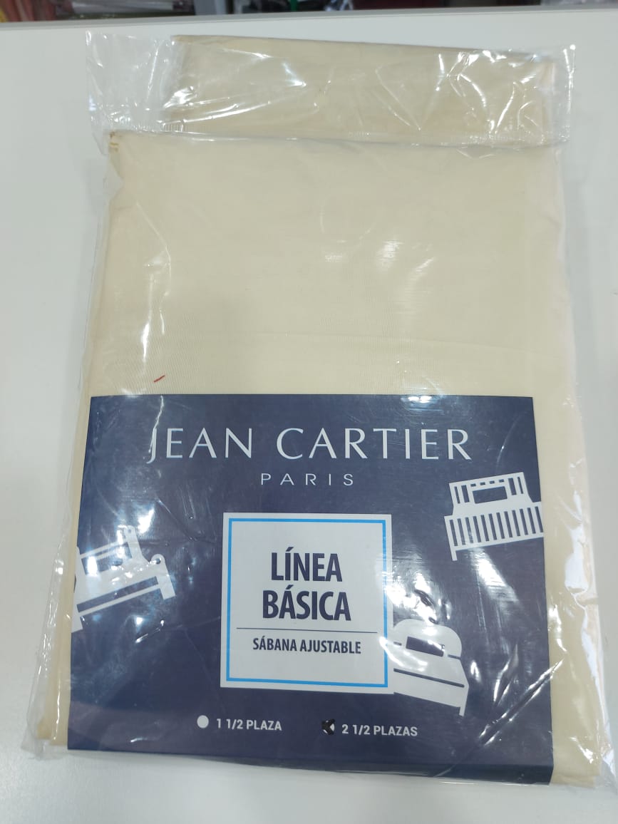Sabana Ajustable Jean Cartier Línea Básica/Crema. 1 1/2 Plazas.